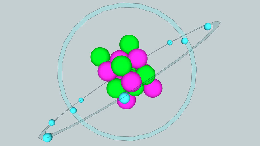 The nucleus consists of 9 protons (red) and 10 neutrons (orange).. The nucleus consists of 9 protons (red) and 10 neutrons (orange). According to bohr's model of the atom, electrons orbit about the nucleus much like the way planets orbit the sun.